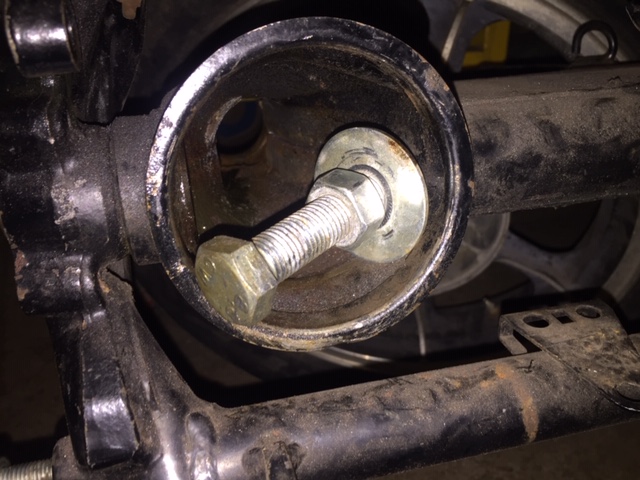 When I had turned in the bolt 5 threads I knew I had run out of depth in the pin, so I switched out the bolt for the 60mm bolt and again tightened down until I ran out of thread , then switched out to the 50 mm bolt and finished removing the pin