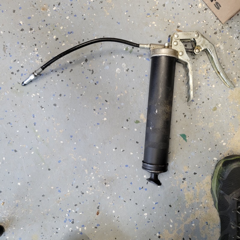 My original thought was to drill and tap the bearing cup for a grease fitting but these bearing cups are hardened steel and not able to drill, so I opted to just regrease the joint. I removed a circlip and drove out the bearing cup, then using a rubber tipped grease fitting on my grease gun. Pumped in a few strokes of grease until new grease showed up at the other 3 cups. Easy peasy. Installed the 4th cup and circlip and then serviced the outboard end as per the service manual.
