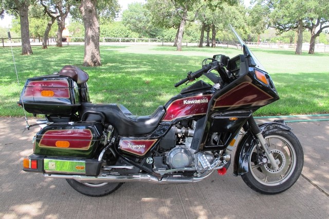 Bought my '85 Voyager about three months ago but not much chance to work on it or ride much since. I owned an '83 Voyager with a sidecar about 20 years ago. Love these bikes, so just had to buy this '85 when it came up on eBay. They posted a great video of the bike showing it's flaws and starting/running it. Got it from a dealer in Teas and the previous owner had put in the wrong oil, so the clutch slips. I already did an oil change and it sure helped, but still slips for a split-second if I roll on the throttle in higher gears. I already have a new clutch for it, just no time to put it in. Too cold outside to work under my carport. I did take it for 40 mile ride a couple of weeks ago. Runs just lie new. Has 45,333 miles on it. Cosmetically some of the clear coat is flaking along the edges on the trunk and bags, but not on the fairing. I still have my two helmets that came with my '83 and they have the speakers/mics in them, but this '85 bike doesn't have a working system in it. I see I lost out on a free system recently! DAMN!