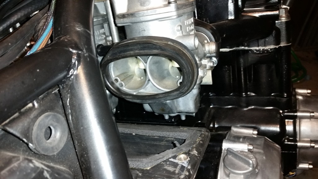 The air box boots that were on this bike are incorrect, I'm not sure but I think the previous owner has used ones from a voyager. They fit when stretched over the carb but they may be causing some leaks, and it's possible they are messing with the air flow to ports on the side of venturi. I crawled up into the attic and pulled down some spare air box parts and now I'm sure they are wrong.