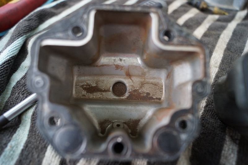Front master cylinder: had fluid in it, the bore and piston just need a clean and polish; I have high hopes for them. Diaphragm was disintegrated.