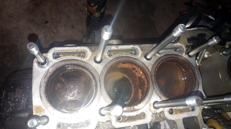That was three months ago. In the process, I found out that the seller was lying. The engine need way more than a total top rebuild. The bike was left, I am sure, in some very wet conditions with spark plugs hardly screwed in. Water got into all cylinders and all became very rusty. All the pistons were stone cold stuck.