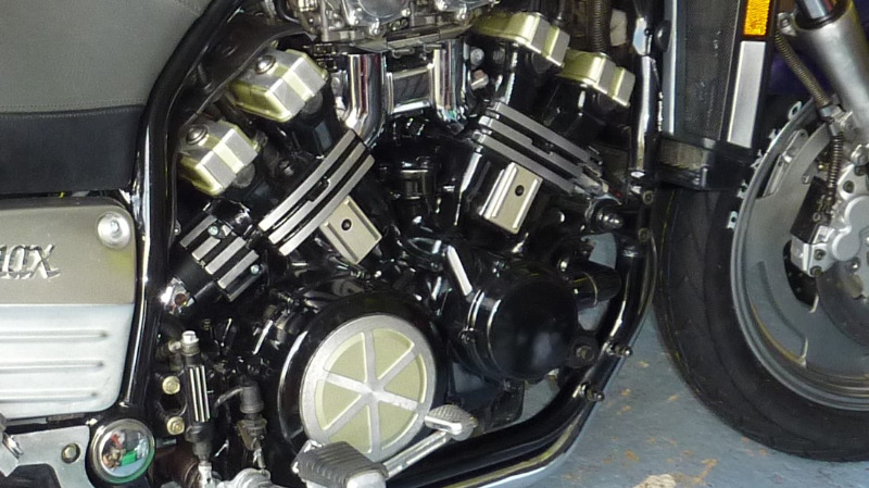 A year ago I re-painted my Vmax engine: the Vmax forum guru's recommended using a paint called Simoniz Engine Enamel - gloss black: meant to be near as dammit same as Yamaha original finish.