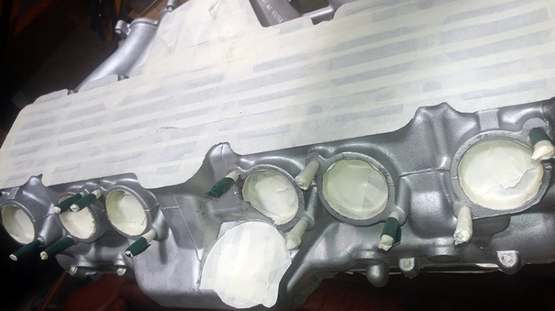Masking of the head done. I used painters masking tape and disposable plastic caps which are used to block holes in (for example) hydraulic components like valves etc. when selling them.