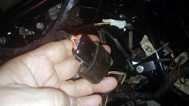 I am putting back the electrical system, which was quite a mess when it came with the bike. All lights and signals missing, some cut wires and lots of loose stuff. I'm trying to find the correct placement for everything (don't mind the few brackets with paint coming off - that will be taken care of once I have all components sorted out and hooked up; easy to beautify the subcomponents even one by one).