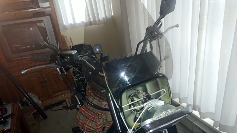 I've had this free acquired windshield sitting around for many months. I knew it will find it's purpose. I am going to shave off few inches from the top, and it will keep the bugs, stones, and the wind off my face. And it looks great!