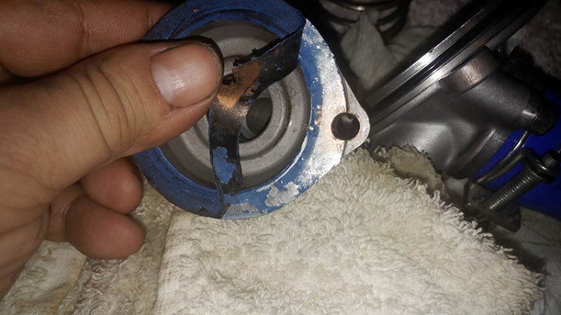 When I first installed the housing it was fine and just had a very small leak, droplets, from just one spot when cranking the engine. Now, with the 'new' method, I was literally pissing coolant all over my shiny exhaust pipes. So, my verdict is - I will not use grease and silicone on this gasket.