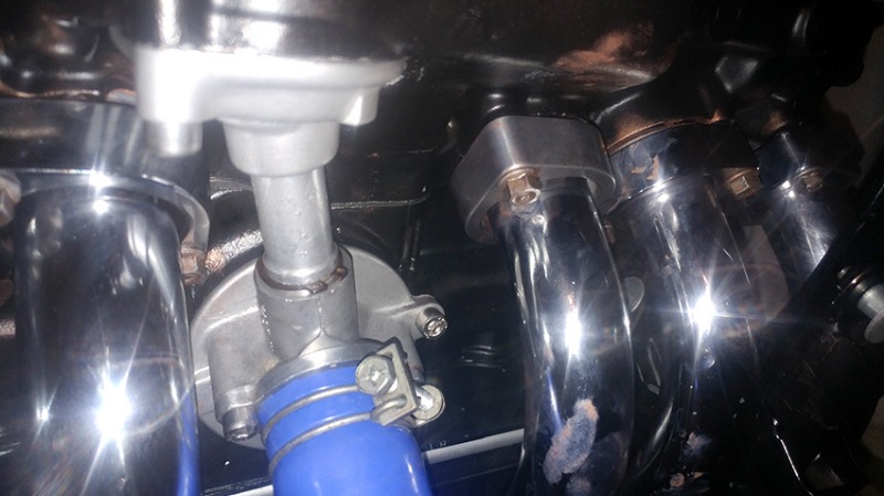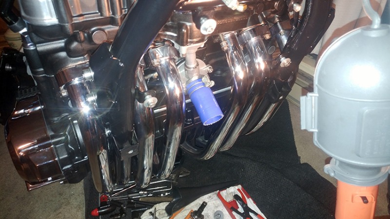 Managed to install that missing one (#3), so I am ready to close the cooling system again. All the other five are chrome plated, this one just hand polished. Gives the bike more character!
