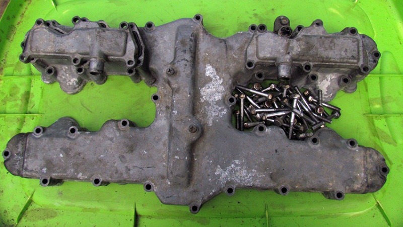 Investment for the future - got this complete cover for $12. One day later I'm going to clean it all up and plug the reed valve holes, like scotch suggested, and grind those raised ports and lower the valve covers (keeping them if possible for pure visual effect) so I could fit those alternative larger coils, like those from Ford.