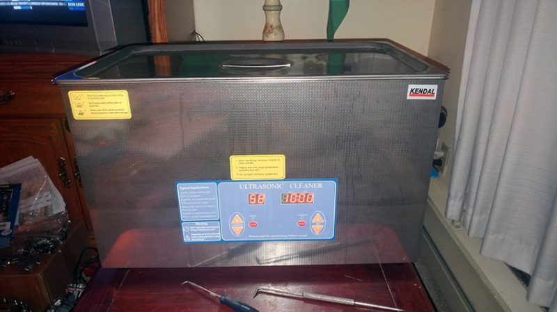 I use Kendal cleaner model HB-S-821DHT. Frequency 42 KHz, Ultrasonic power 480 W, Heating power 500 W.