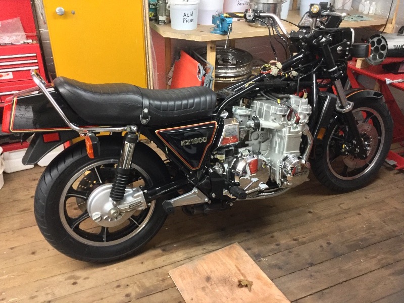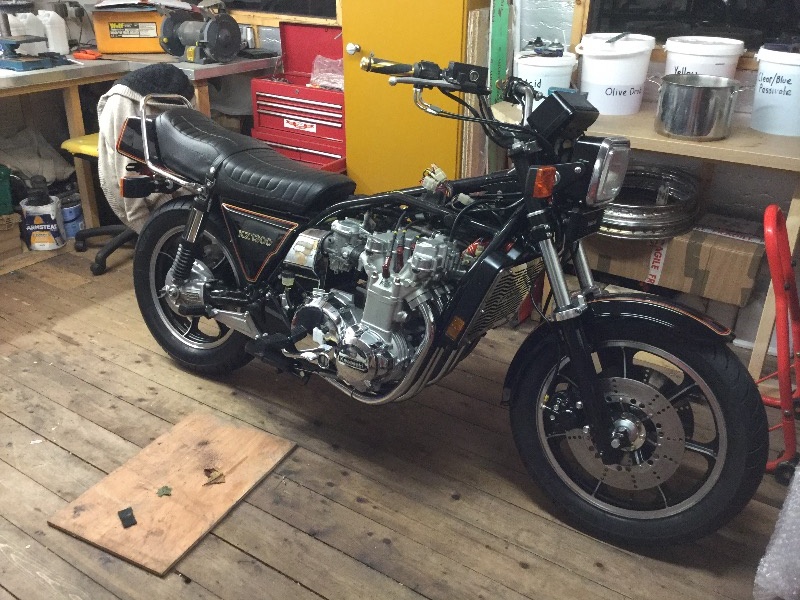 Almost there. Just waiting for a few bits to finish. Off next job is take the handlebars off and fit a temporary pair to enable me to get it out the workshop and down the side of the house. Looking forward to the weekend to try and get her up and running.