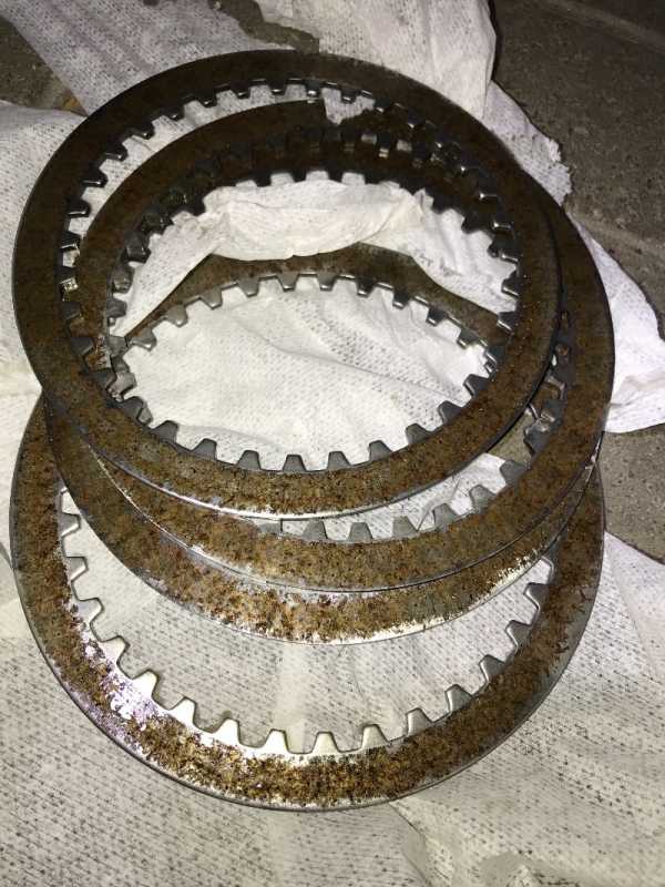 Stripping it down for powder coating. Checked the clutch and they where pretty rusty. Friction plates are within spec. Here is before cleaning