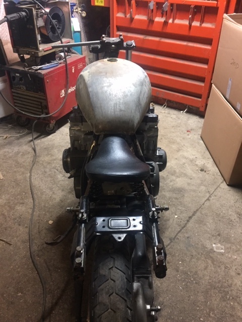 More progress... tank is now securely clamped to frame at the rear, seat brackets also installed and presto! I can sit on it again!