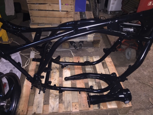 Another milestone: frame and ancillaries powder coated... it looks glossy, but actually it is satin black.