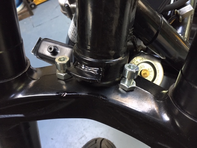 Is that bottom yoke aluminium? Have you got enough meat to machine a portion out for clearance? It's what I had to do on the billet bottom yoke on my 13 for the same.