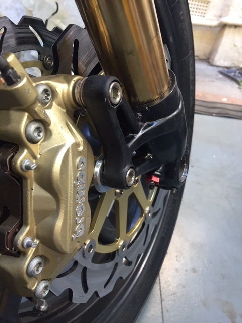 Then I put them onto the bike and pressure gone again.... grrr...anyway an hour later and it becomes apparent that when I tighten the bolts attaching the calipers to the forks, I lose pressure. A few washers later and we are in business! ... Pfff Brembo prima-donna stuff!