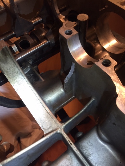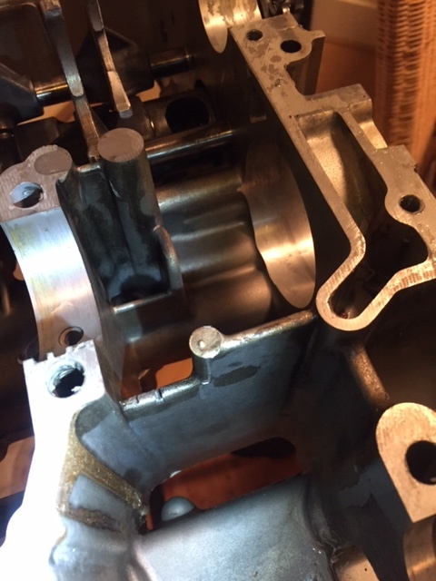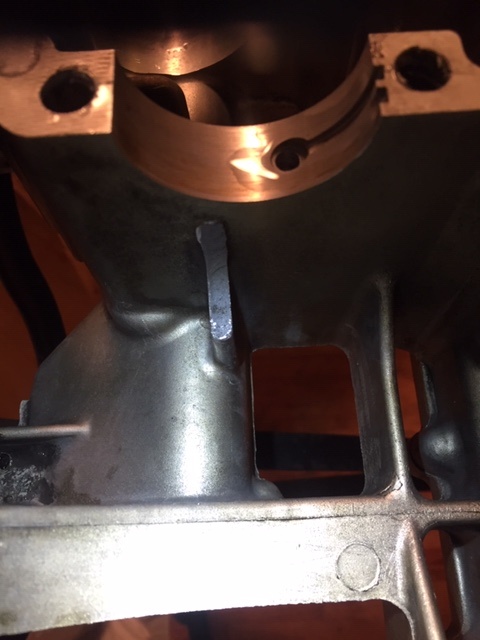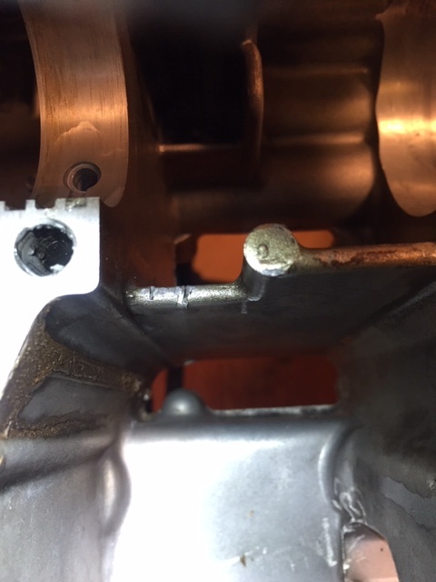7 years 5 months agoQuestion- On the lower crankcase half there's a web behind the 3rd and 4th main bearing. Is that a nick I see in the web that might have been made by the primary chain bumping up against it?