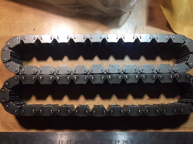 The difference in length is virtually imperceptible. The new chains feel stiffer than the old ones and flex slightly less, but other than that they are very similar. There is a length difference, but it is very slight. I could only see it by lining up two links with a metal bar and pulling the chains straight, then at the other end you can see a very slight length difference. Top ones are the new ones.