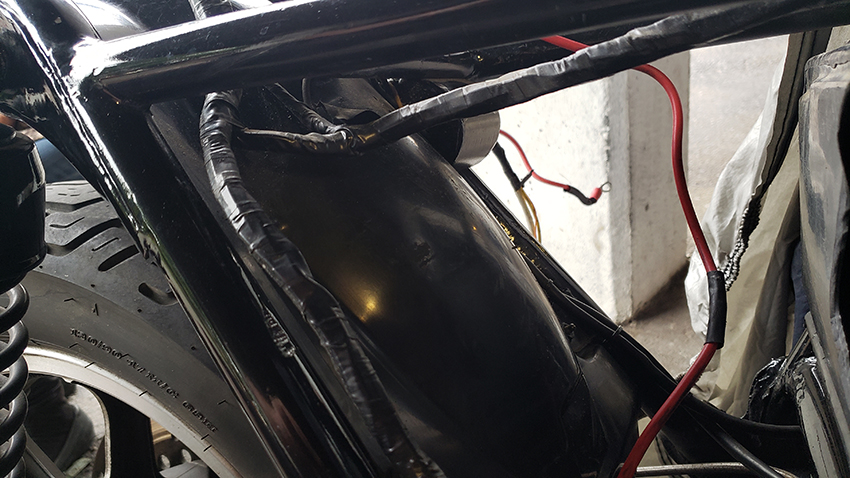 At this stage, it is mainly clean up and prep work. Starting with rear of the bike, the first thing is to get the wiring out of the way from the rear of the bike - everything and anything electric had been removed from the mid section of the bike and stuffed into the modified tail section.