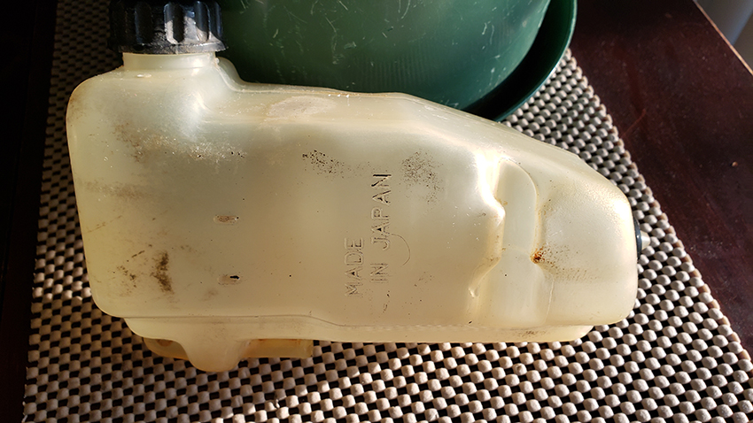 Now, let's go to what happened. I flushed the whole cooling system with water. Drained, then rinsed the whole radiator and engine with pressurised water until nothing but crystal clear water was coming out. The overflow reservoir was filty - that was cleaned as well.