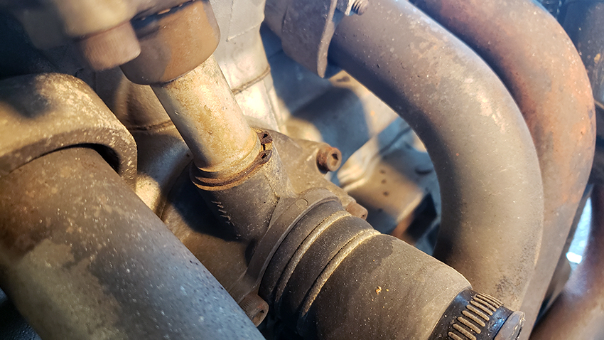 The water pump housing looks good and potentially has never been removed. The one clamp was replaced when removing the radiator to install the aftermarket 6-1 exhaust.
