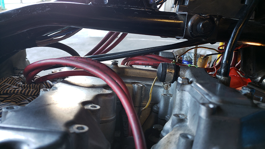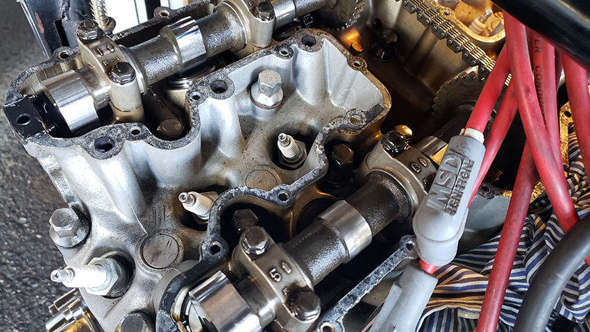 Next is the cam cover. But first a few photos of what I can see there. The vacuum valve is removed, and there is an aftermarket ignition coils block installed. It says MSD - I know the name, but no idea about this particular one used. Anyone with ideas?