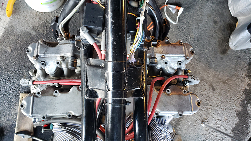 The good thing is there is lots of space above the cylinder head. In fact so much, that I can simply remove all the bolts and pull out the cover without touching anything. Absolutely no hassle, unlike my A4 with all mounted as it is in stock bikes.