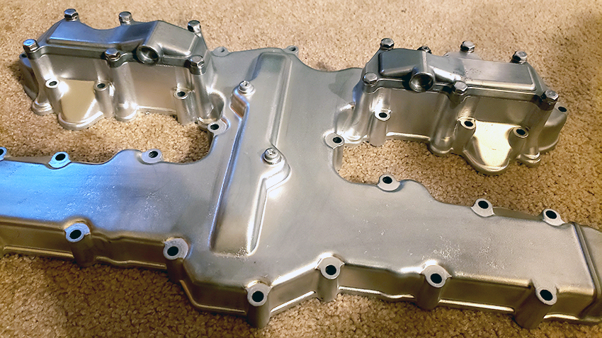 Not a final product, but close to it. All the bare aluminum parts will be polished way more, and this is a spare cover anyway. I will revisit what I have, and the original that came off this bike still needs cleaning to see what it is, then I will choose the one to use. It's all about pitting. This one, is actually really good. With photos, it's all about lighting and shadows.