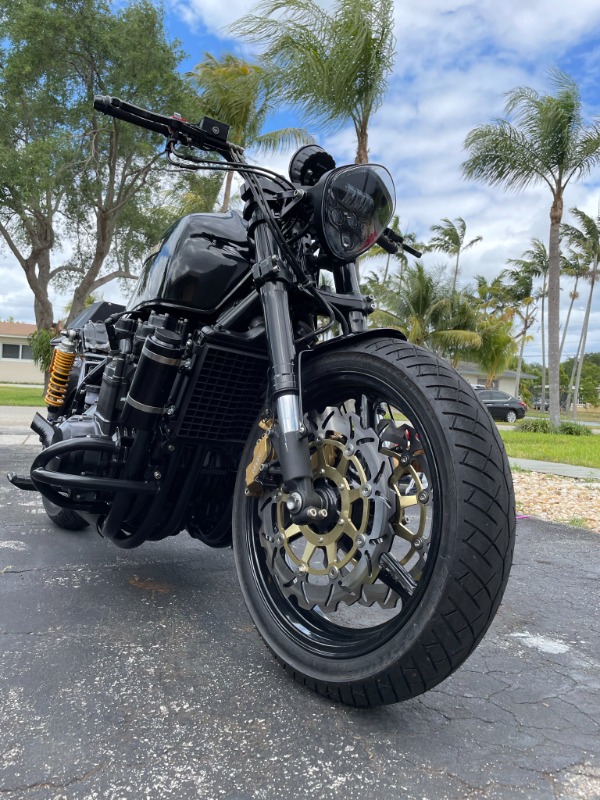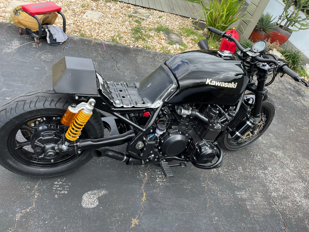 That looks amazing. I'd love to fit USD forks to mine but too worried about insurance and historic status (must not be too modified from standard and I already have Brembo P4 conversion and EBC floating disks)