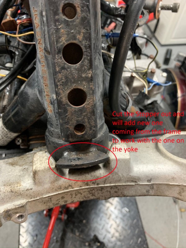 Here i cut the stopper from the bike, maybe the better solution was to cut the stoppers from the yoke and put new one in different location as Paul did.