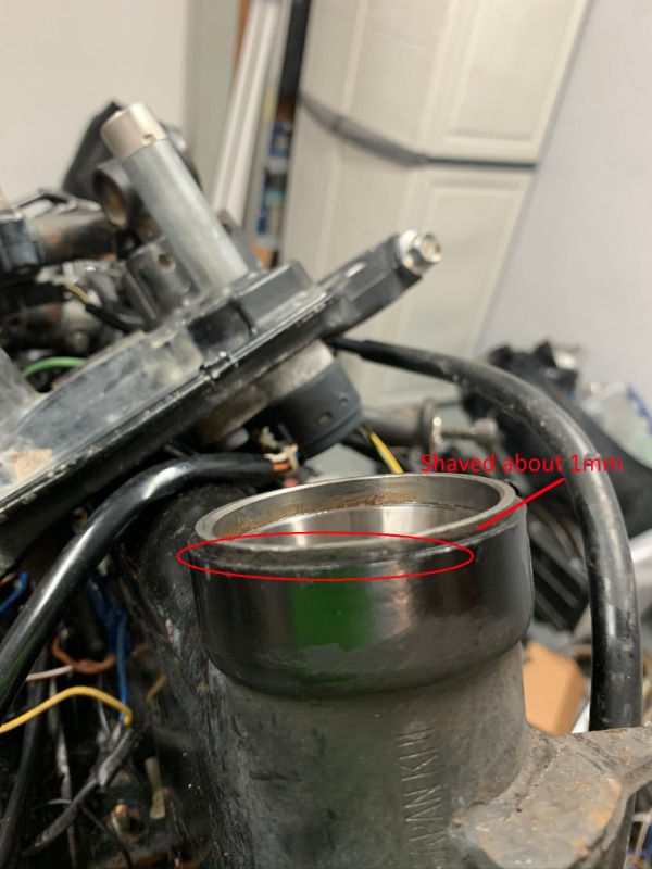 since the upper bearing will be 1mm lower I shaved 1 mm from the top, im waiting to get the new bearing too see if i can shave more