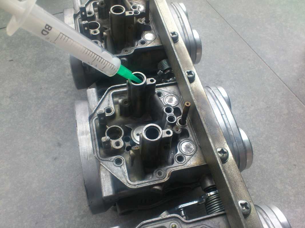 middle carb channels from main to pilot jets where both clogged, witch I guess was the problem the 2 middle cylinders where not idling but running when riding.
