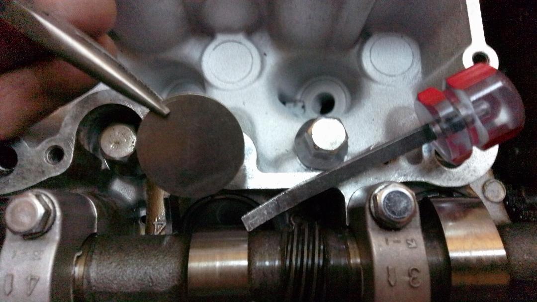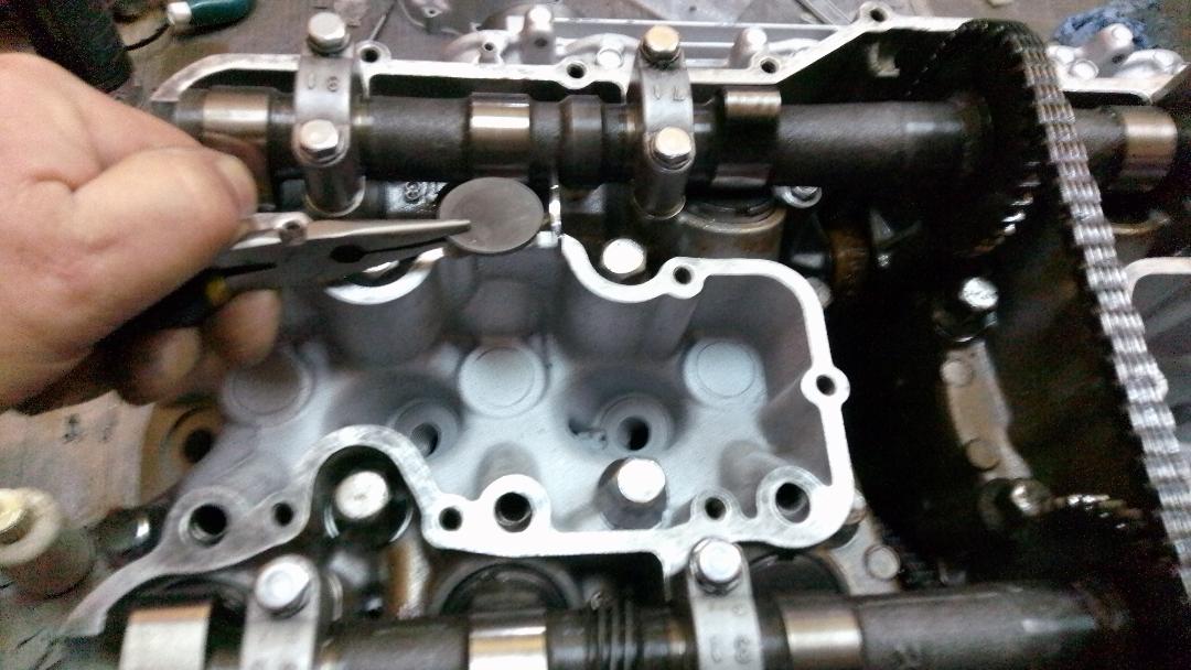 The shims that the engine had mounted are quite marked on the side where the camshaft exerts force, I will not have them changed, they will still serve me well if one day I have to adjust my KZ 1000, they are the same diameter.