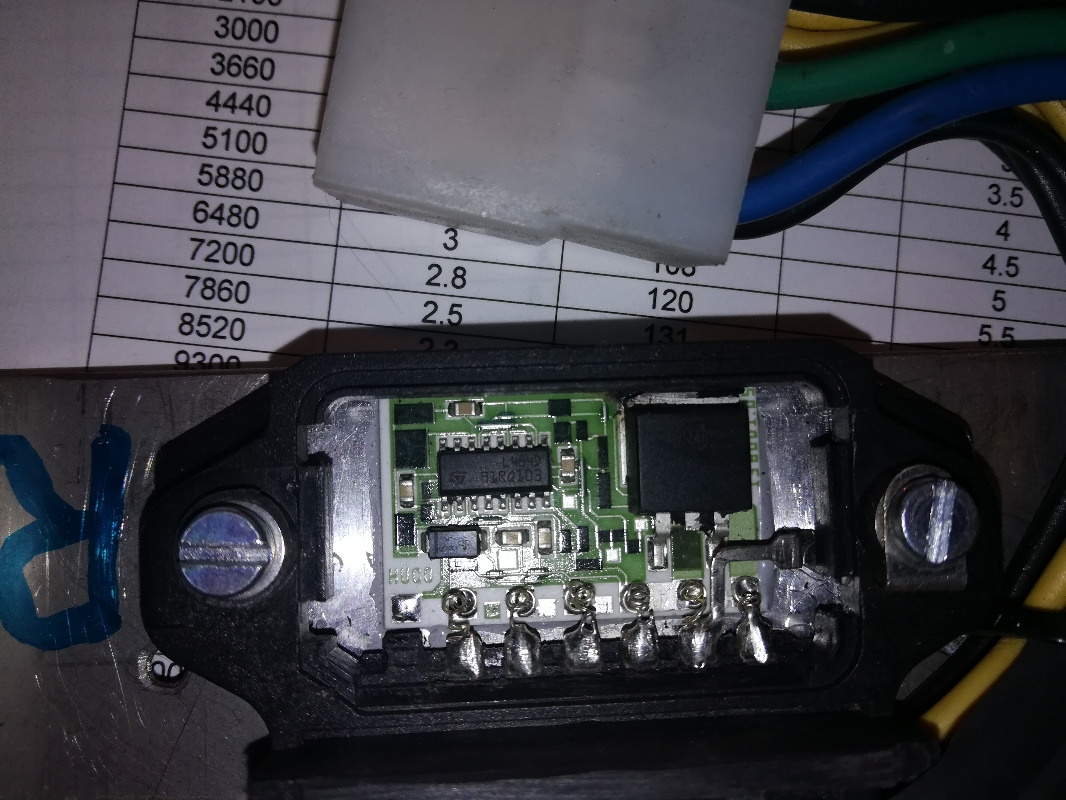 This is the Huco 13-8001 igniter internals (borrowed from another topic- Alternate Ignition System that Daro built . Note that there are also 6 wires attached to the igniter much like the Kawasaki stock igniter.