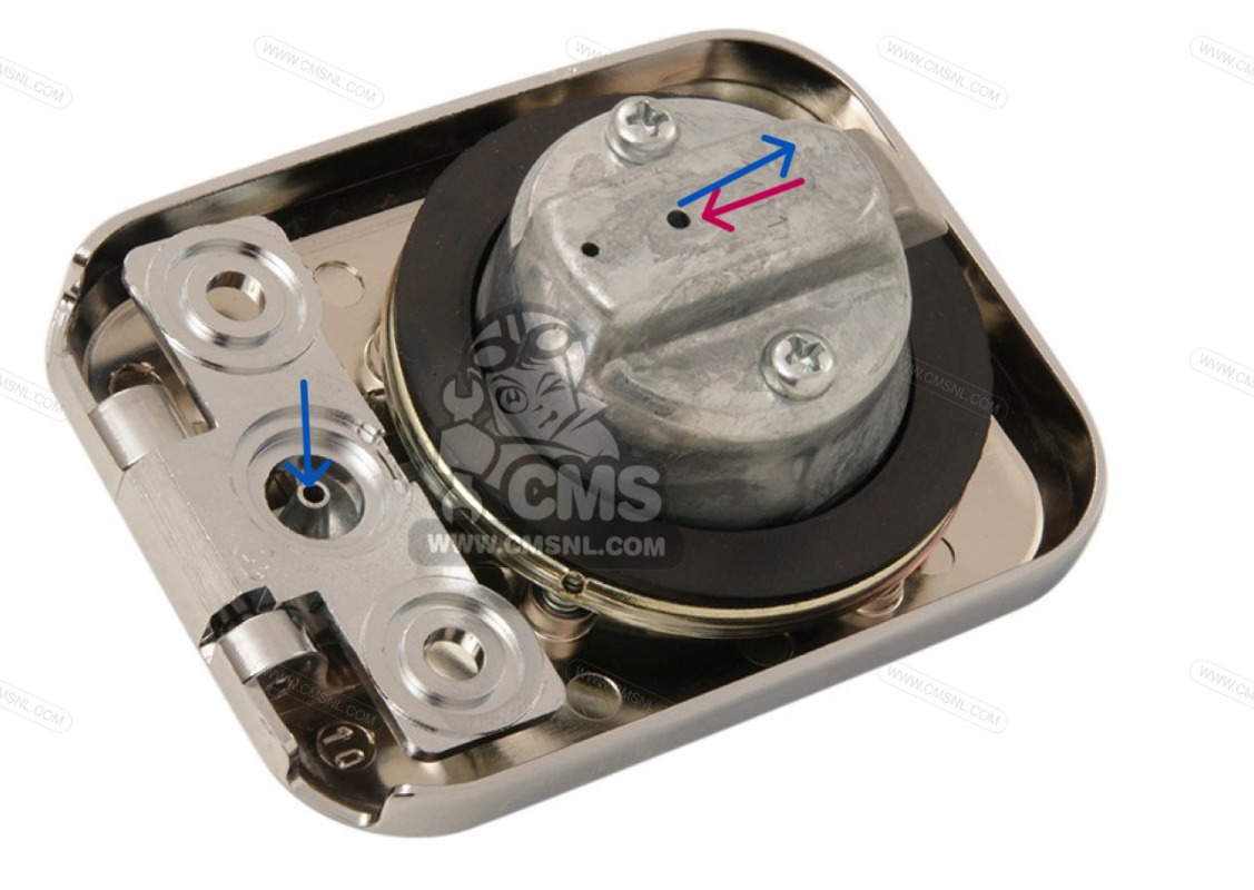 An aftermarket fuel cap may have something similar and it might vent through the key cylinder, maybe, I don't know. Having the stock fuel cap uses the fuel vent pipe to also act as an overflow and spill excess fuel onto the ground and not allow fuel to flow out the top and all over the tank and seat, or maybe your crotch.