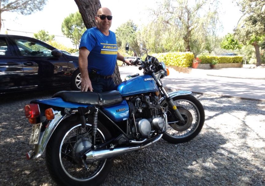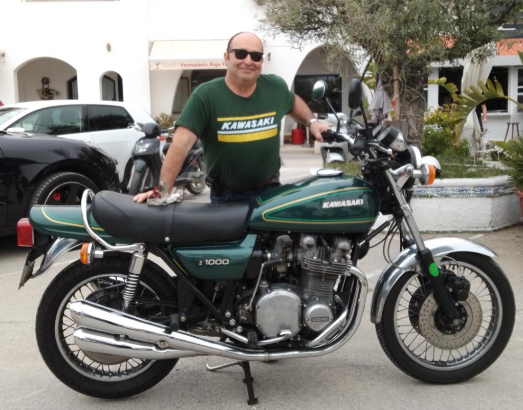 Here I am with my green t-shirt and his matching motorcycle.