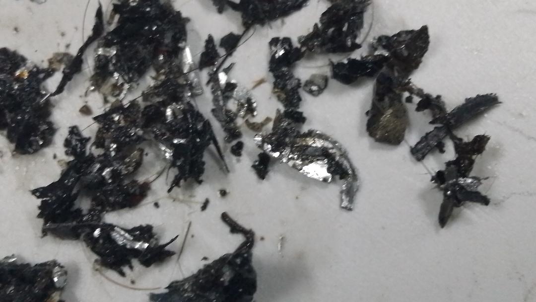 The filter was filled with silver flakes and black silicone gasket residue.