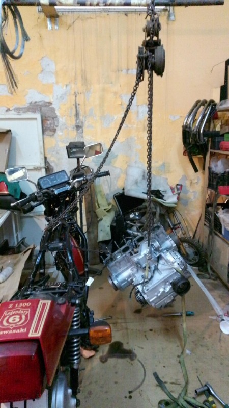 I used the old hoist I installed a year ago to pull the engine out of the chassis.