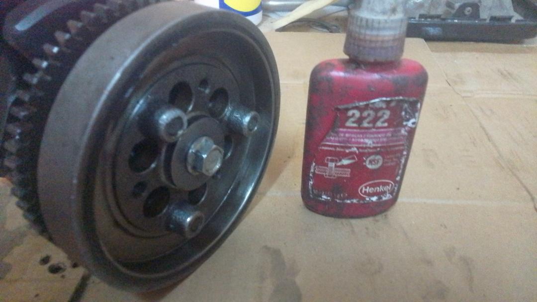 On the crankshaft side of the starter clutch, left hand thread, I smeared the bolt with fixing paste.