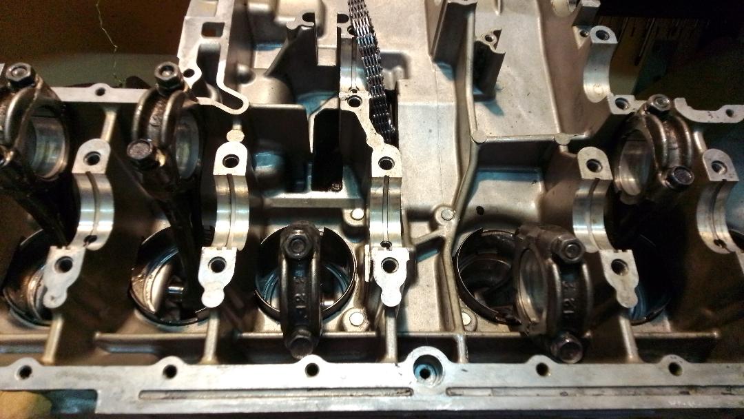 I have already attached the cylinder block to the top half of the crankcase.