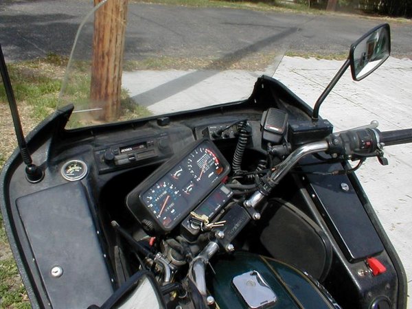 What I know: Owned by a nice 77 year old man since 1990. Second owner. All there, except for a bit of extra wiring to a fairing-mounted starter button (apparently the original grenaded). Radio, CB, Voltmeter. Manual included, along with some spare parts (cables, etc.). Runs, but doesn't want to idle- something about cylinder no. 4. Could just be from sitting with the fluids drained all winter. Used for touring, with 44K miles on the clock.