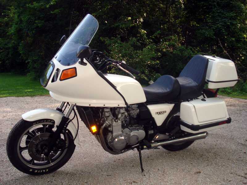 I just spent the summer painting my '80 B2 Touring. Since I took this photo, I've added some rubber knee pads (from an old BMW) to the tank, and some badges and reflectors to the luggage and fairing to break up the Arctic-like expanses of white!