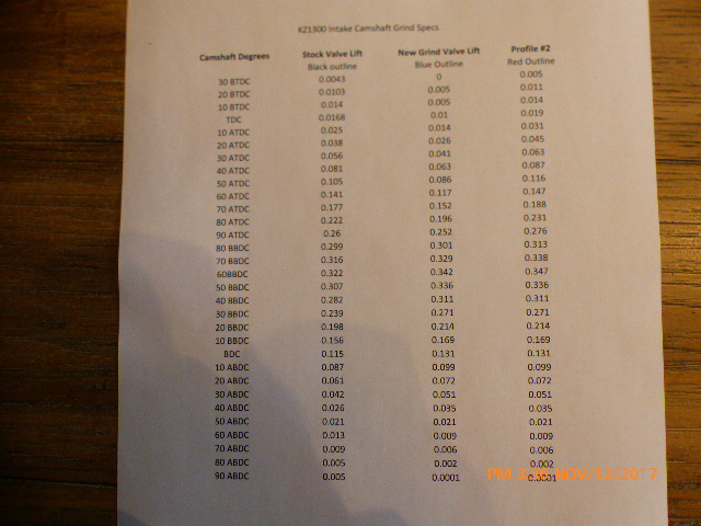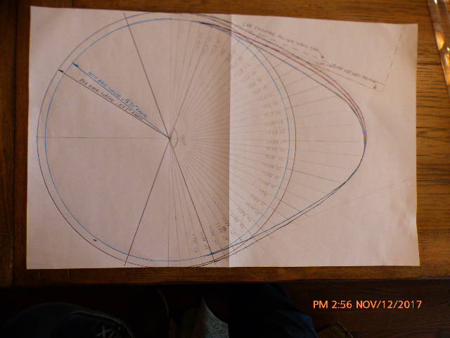 The picture represents well over 100 hours of drawing, measuring, analyzing, scrapping and redrawing until I finally came up with the final drawing for the camshaft grind. I've managed to increase the acceleration of the opening ramp slightly better than the stock, given more time for the decelleration to allow the camshaft to pass off the valve face to the valve seat, clean up the duration from a very sloppy 340 degrees duration back to 280 degrees duration and increase lift by .028" to .248" I also managed to overcome the issue with the valve seats ground too deep in the head. i should now be able to use 2.70mm- 2.80mm shims