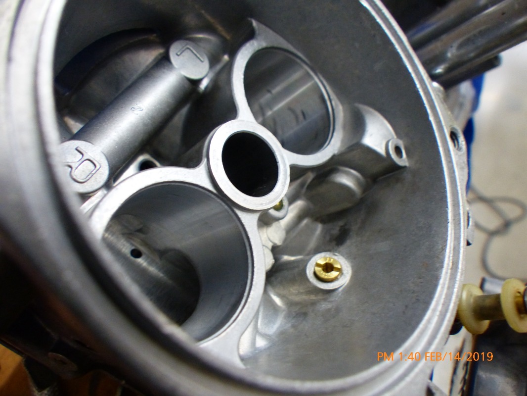 Popped the lid of of the carbs and started the mod. The thread size on the B42/55 is a 6mm x 1mm standard thread. The tap drill for that thread is a #9 which is .194" I measured the bore of the air jet in the body of the carb at .191" so there was no reason to have to run the #9 bit in the hole, just tap it out to 6mm X 1mm. Tapped it in 5 threads, cleaned the hole with a vacuum and pulled the choke plunger out to ensure no aluminum thread filings. Inserted the jet and Bob's your Uncle. So I've choked down the air to the choke circuit from .191" to .110" using the B42/55 X #280 jet.