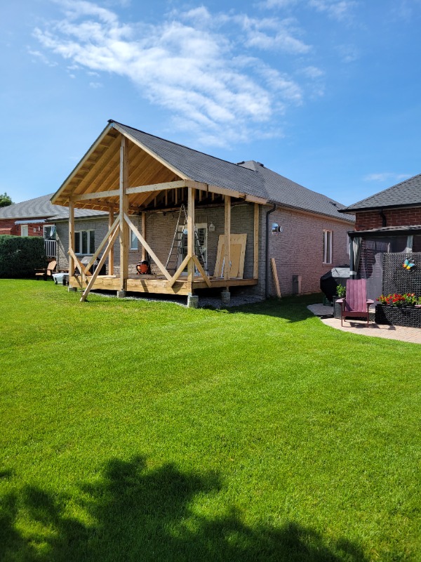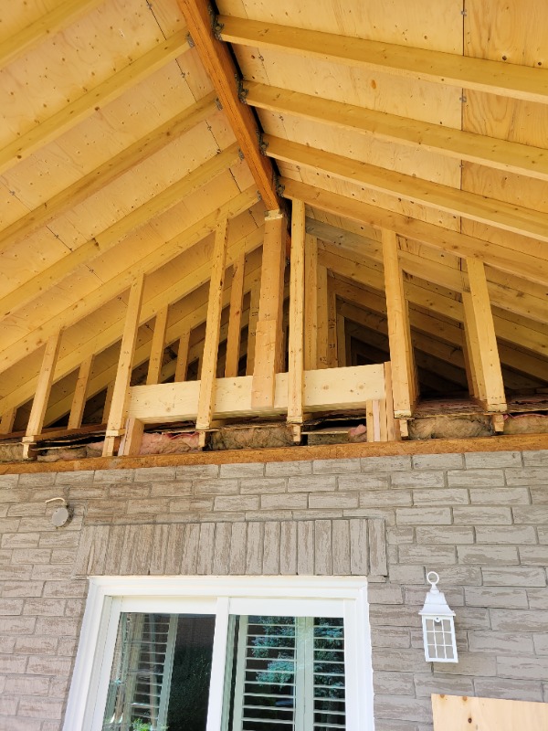 Supports in to support the new gable end on to the old roof for snow load plus the beam and post to support the LVL beam.