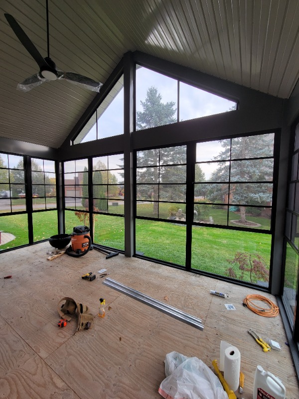 All the vinyl windows in although 1 of the frames got bent in shipping so that window is mounted temporarily just to close in the room so that the carpet guys can come and install the carpet next week.