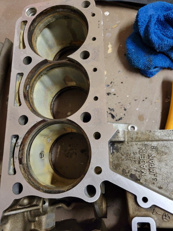 So, here's where I'm at. Pulled the cylinder liners out of the cylinder block by putting the cylinder block on the BBQ @ 350F for 45 minutes. Knocked out the liners with a block of wood and small hammer. In the process of looking at replacing the liners with custom liners to accommodate KZ750 (66 mm) pistons. In the meantime, I've cleaned up 5 of the 6 stock liners and they could be reused if the cost of the custom liners ends up being ridiculous.