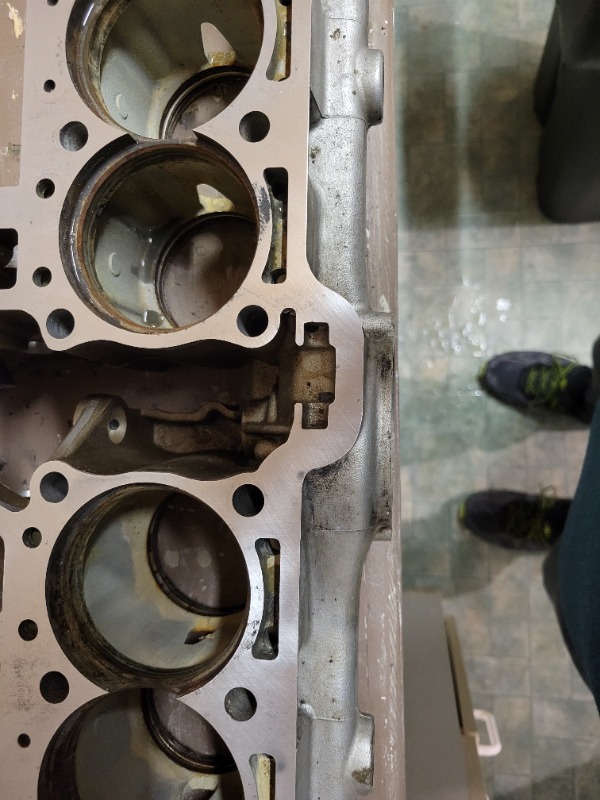 I also had a casting flaw in the aluminum block that concerned me. There was a small area of porous aluminum beside the upper flange of one of the cylinders and this is a sealing area of the head gasket. JB Weld has been applied and I'll dress it down before installing the sleeves back into the block.