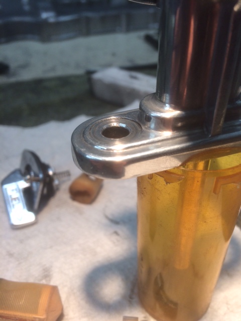 So here are the last two photos. A very minor chamfer on the bolt holes accepts a very small O-ring on the bolt. Determining the size of the chamfer and the size of the O-ring was by trial. I knew they were correct when I could insert the O-ringed bolt into the holes, push the bolts in and feel the O-rings being squeezed. Mine didn't leak (without the plastic washers the bolt heads sealed against the softer aluminum) and this will simply add to the fact.