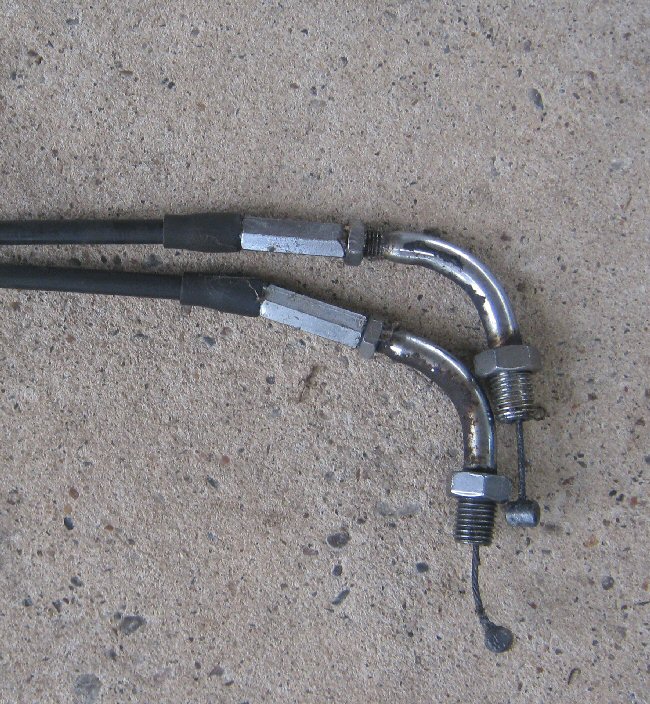 As a stop gap measure, I was able to use my stock KZ throttle cables and route them over the top of the handlebar cluster. The one discrepancy is when I turn the handlebars to the left, they run out of slack and cause the throttle to bind. I'll have to have some custom cables made. So using the KZ cables as a guide/ (Plus 2") on each cable.